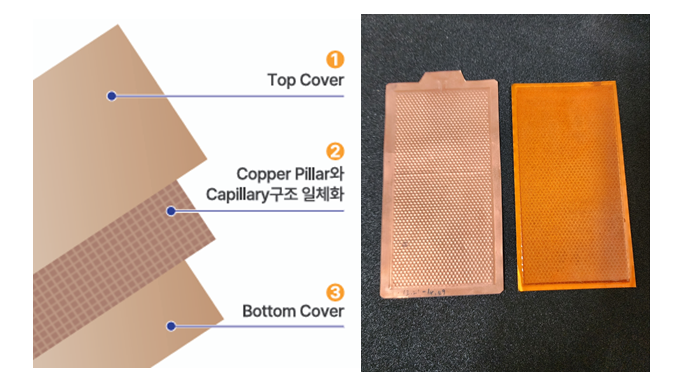 Capillary Structure와 Pillar를 하나로 통합하여 공정 단순화, 생산단가가 낮고 대량생산에 적합하며